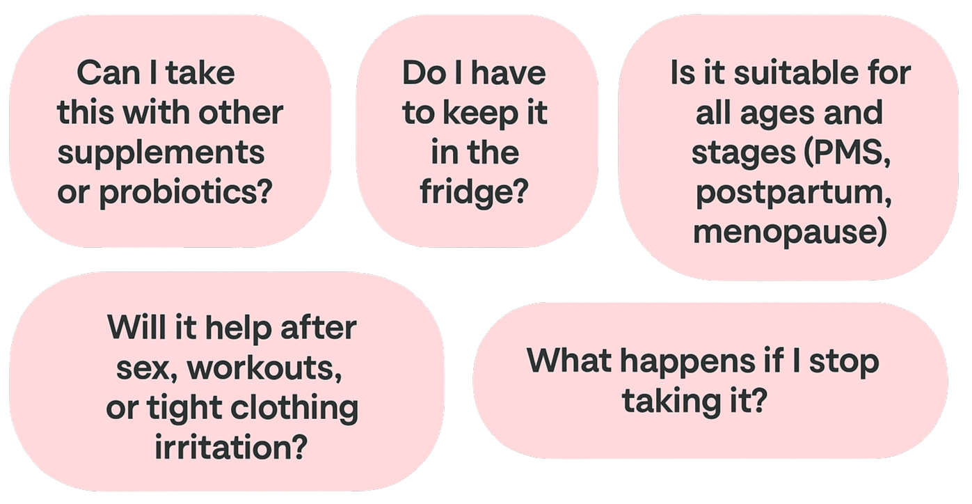 Yes. It’s safe to combine with most vitamins, supplements, and even gut probiotics, because this formula is specifically targeted to the vaginal microbiome — not the digestive system. If you're on medication, just double-check with your doctor (standard safety rule).
